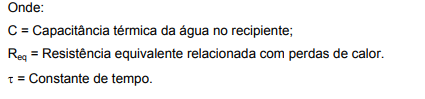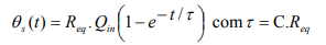 O comportamento da temperatura de saída da água θs (que é considerada igual à temperatura interna do aquecedor) em função de um fluxo de calor constante a partir do instante inicial (t = 0) é expresso como: