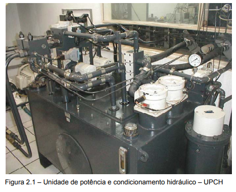 Nesta seção apresenta-se a especificação e descrição de um sistema de controle de temperatura (SAM-Temp) empregado em uma unidade de potência e condicionamento hidráulico automática (UPCH), projetada e implementada no LASHIP/EMC/UFSC, destinada à pesquisa aplicada e ao teste normalizado de componentes hidráulicos industriais. Esta unidade de potência, mostrada na figura 2.1, possui as seguintes características: