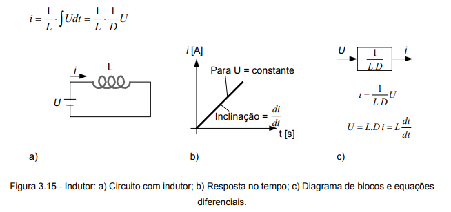Em um indutor (figura 3.15), sabe-se que, quando da aplicação de uma tensão, há o surgimento de uma tensão induzida oposta àquela que foi aplicada externamente. Esta tensão induzida é máxima quando da aplicação da tensão e reduz-se gradativamente de tal modo que a corrente no circuito cresce a uma taxa constante (figura 3.15b).