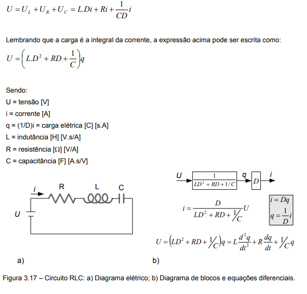 Para o circuito RLC em série mostrado na figura 3.17, a queda total de tensão (U) é a soma da queda de tensão através do indutor, mas aquela através do resistor e aquela através do capacitor, ou seja: