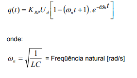 Conforme mencionando anteriormente, o diagrama de blocos e as equações diferenciais apresentadas modelam implicitamente o comportamento sistema. A observação da resposta no tempo para um determinado tipo de entrada dá-se pela solução da equação diferencial. Para o caso de uma entrada em degrau e supondo uma razão de amortecimento igual a 1 (ξ = 1), a carga em função do tempo é dada por: