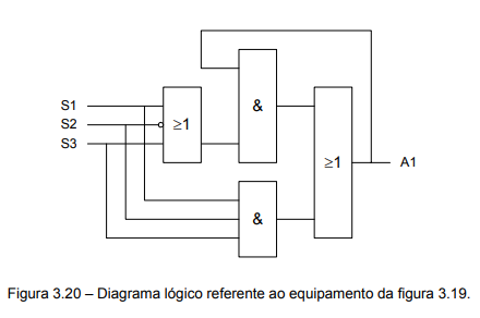 Neste caso, a variável A1 corresponde ao acionamento da válvula direcional e, consequentemente, o avanço do cilindro. O diagrama lógico correspondente está mostrado na figura 3.20 utilizando a notação IEC.