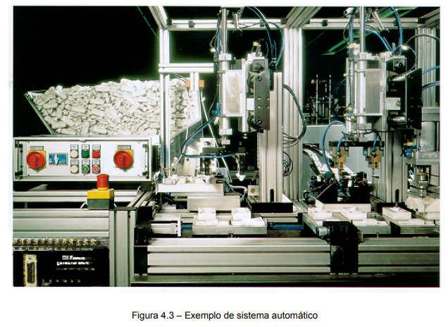 Sistema de Automação: Emprega-se esta denominação quando se interpreta que um conjunto de componentes interconectados tem como função principal a realização de uma ou mais ações segundo uma lógica pré-determinada e em resposta ao estado em que se encontra o equipamento e à ocorrência de eventos. As ações podem ser o avanço ou recuo de um cilindro, o acionamento ou não de uma ventosa, o acionamento ou parada de um motor elétrico, pneumático ou hidráulico. Os eventos correspondem a sinais decorrentes do término de uma tarefa ou à mudança do estado de um dispositivo, caracterizando-se por serem abruptos e instantâneos. Como exemplos de eventos, pode-se citar o acionamento de botões pelo operador, o fechamento de contatos em chaves fim-de-curso de cilindros e a detecção de presença de peças em um magazine.