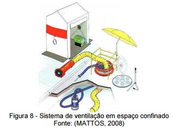 Durante todo o trabalho no espaço confinado deverá ser utilizada ventilação adequada para garantir a renovação contínua do ar (KULCSAR NETO; POSSEBON; AMARAL, 2009).