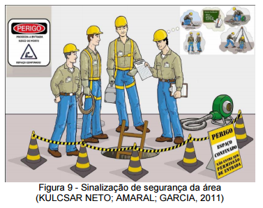 A sinalização é importante para informar e alertar quanto aos riscos em espaços confinados (KULCSAR NETO; POSSEBON; AMARAL, 2009). Pode-se verificar alguns exemplos de instrumentos de sinalização nas figuras 10,11,12 e 13.