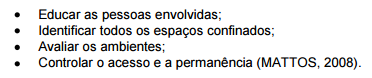É vedada a realização de qualquer trabalho de forma individualizada ou isolada em espaços confinados (MATTOS, 2008).