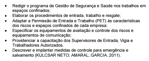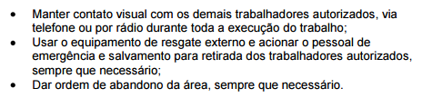 4 Atribuições da equipe de segurança envolvida com espaços confinados