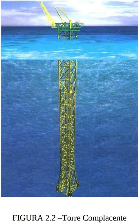 Tem características semelhantes à plataforma do tipo Jaqueta, possui tubos de aço como revestimento e estrutura treliçada. O que difere é o formato. Enquanto a jaqueta possui base mais ampla, a torra complacente é formada por uma torre estreita e flexível para suportar forças laterais através de deflexões. Com isso, aumenta a estabilidade em lâminas d’água superiores a 400 metros.