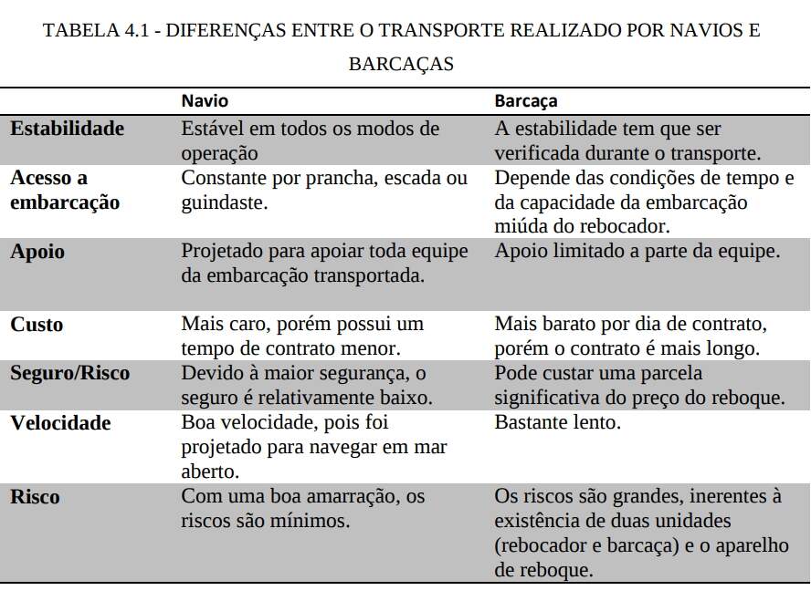 b) Rebocador, que pode ser usado para o transporte da maioria das plataformas, mas, principalmente, as auto – elevatórias, de gravidade e FPSO.