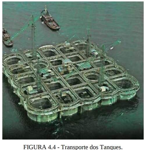 A construção das plataformas fixas de gravidade é iniciada em canteiro de obra do estaleiro e finalizada em alto – mar, devido às características já mencionadas no capítulo 1. Os tanques são concretados e transportados para o local de instalação da plataforma onde o processo é finalizado com a construção das colunas.