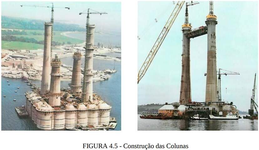 A figura a seguir mostra a construção das colunas de concreto da plataforma para a finalização do processo de instalação.