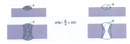 A composição química de uma solda não é a mesma especificada para o metal de adição depositado. O coeficiente de diluição ou simplesmente diluição, indica a participação do metal de base na constituição da zona fundida (ver figura X).