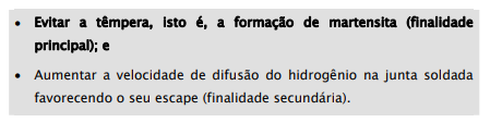 É conveniente salientar que o pós-aquecimento, por ser executado em temperatura relativamente baixa, não deve ser considerado como um tratamento térmico de alívio de tensões, pois, para tanto, seria necessário um tempo de permanência nesta temperatura extremamente longo.