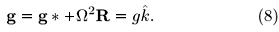 O primeiro termo do lado direito da Eq. (7) corresponde a uma das forças aparentes decorrentes da consideração da segunda lei de Newton em um sistema de coordenadas não-inercial, a chamada força de Coriolis. A segunda força aparente é a força centrífuga, representada no segundo termo da Eq. (7). Os três demais termos do lado direito da Eq. (7) são as forças reais atuantes sobre a parcela, discutidas anteriormente. A força centrífuga atua perpendicularmente ao eixo de rotação da Terra e soma-se vetorialmente à força gravitacional, dando origem à força de gravidade, g, definida como