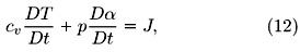 em que cv é o calor específico a volume constante para o ar seco, T é a temperatura do ar, a é o volume específico do ar e J é a taxa de aquecimento por unidade de massa devido a radiação, condução e liberação de calor latente.