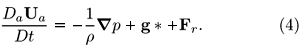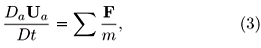 onde Ua representa a velocidade da parcela referente ao sistema inercial e DaUa /Dt representa a taxa de variação de Ua, seguindo o movimento da parcela, e relativa ao sistema de coordenadas inercial. Esta expressão afirma que a aceleração da parcela de ar é igual ao somatório de todas as forças (por unidade de massa) aplicadas sobre a parcela. Assim
