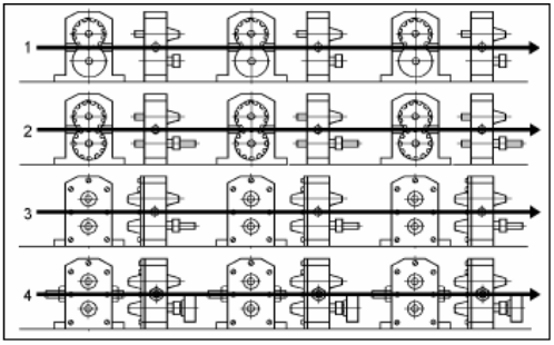 A figura seguinte, a título de exemplo, mostra a seqüência de operações a serem realizadas para a montagem de uma série de bombas de engrenagem.