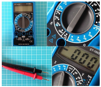 - Verificar as pontas de prova, principalmente se não estão rompidas e se não estão com mal contato em alguma parte do cabo. Eu recomendo curto circuitar as pontas de prova com a escala de resistência selecionada (pode ser até com o bip sonoro ligado) se não bipar, desconfie dessa ponta de prova.