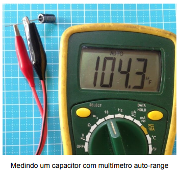 Vários multímetros disponíveis no mercado já vêm com a função de medições de capacitância, neste caso é só selecionar a escala e conectar as pontas de prova no capacitor e medir. Cuidado com capacitores que possam estar carregados, descarregue-os com o auxílio de um resistor antes de medir.