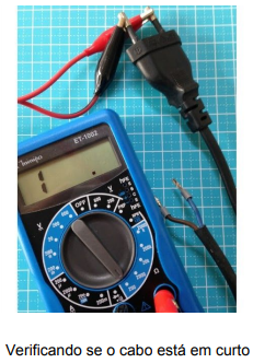 Testar cabos é muito fácil, você pode selecionar a escala de resistência com o bip sonoro. Encoste uma ponta em uma extremidade do Cabo ou pino da tomada e encoste a outra ponta no outra, a resistência deverá ficar próxima de zero e o bip sonoro deverá tocar.