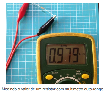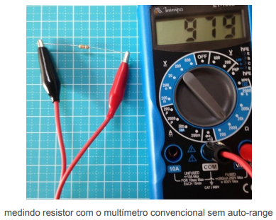 Usando multímetros com auto-range tudo fica mais fácil, pois é só conectar as pontas de prova nos terminais do resistor para medir e comparar com o valor nominal do mesmo.