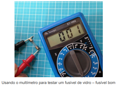 Usando o multímetro para testar um fusível de vidro – fusível queimado