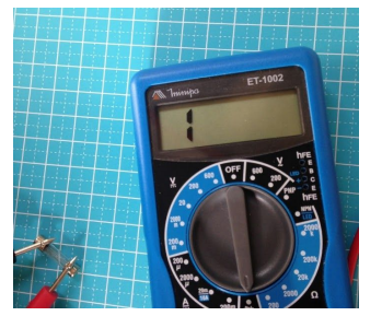 Para finalizar vamos inverter as pontas de prova e agora o resultado deve ser como se o circuito estivesse em aberto, nada muda no display. Se o diodo estiver em curto vai acontecer como já disse antes, o display irá mostrar 0,00.