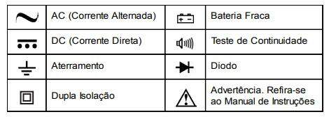 - Quando o instrumento estiver trabalhando com tensão efetiva maior que 60V DC ou 30V AC RMS, cuidado especial deve ser tomado devido ao perigo de choques elétricos.