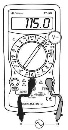 Posicione a chave rotativa em uma das faixas V~ (200V ou 600V).