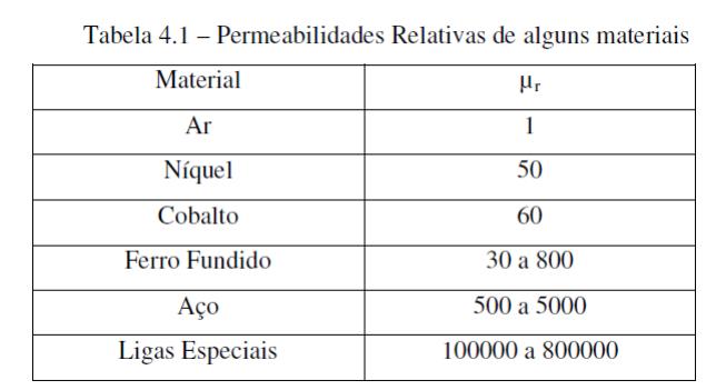 Portanto, os meios não magnéticos como o ar, o alumínio e a madeira entre outros possui permeabilidade: