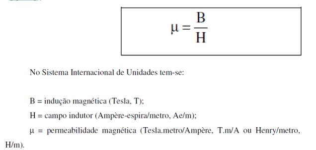 Assim, pode-se definir permeabilidade magnética como a facilidade que o material possui de se magnetizar e expressá-la matematicamente como: