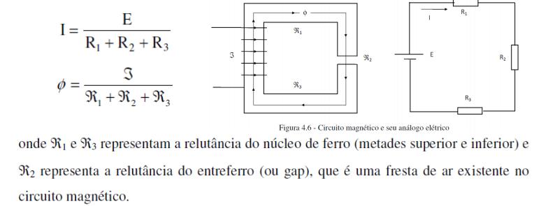 Enunciado: O fluxo magnético num circuito é diretamente proporcional à fmm e inversamente proporcional à relutância.