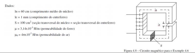 Exemplo 4.4: Calcule a relutância magnética do circuito magnético do exemplo 4.3.