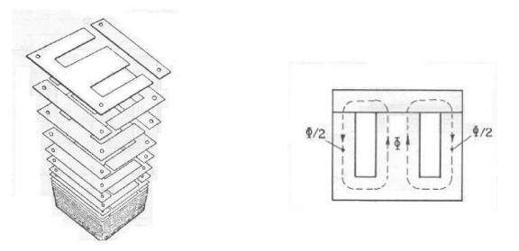 Os circuitos magnéticos encontrados nas aplicações práticas não são maciços como os considerados até agora. Eles são construídos com lâminas de ferro, empilhadas e prensadas, paralelas ao fluxo magnético.