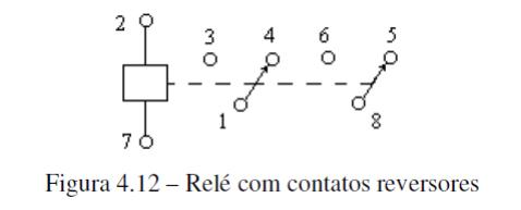 Um relé também pode ter contatos NF (normalmente fechados) ou reversores.