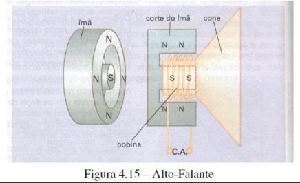 O alto falante é um dispositivo que produz som a partir de uma corrente elétrica variável que passa na bobina de um eletroímã. Esta bobina está presa na base de um cone de papelão e encaixada (com folga) em um ímã permanente. Quando a corrente alternada passa pela bobina do eletroímã, ela é sucessivamente atraída e repelida pelo ímã permanente. O cone acompanha essas vibrações na bobina, provocando compressões e rarefações do ar, que constituem uma onda sonora.