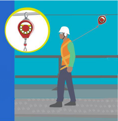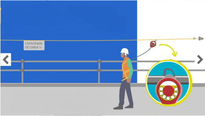 O trava-quedas retrátil deve ser utilizado em atividades com diferença de nível, nas quais há risco de quedas e necessidade de movimentação horizontal e vertical.