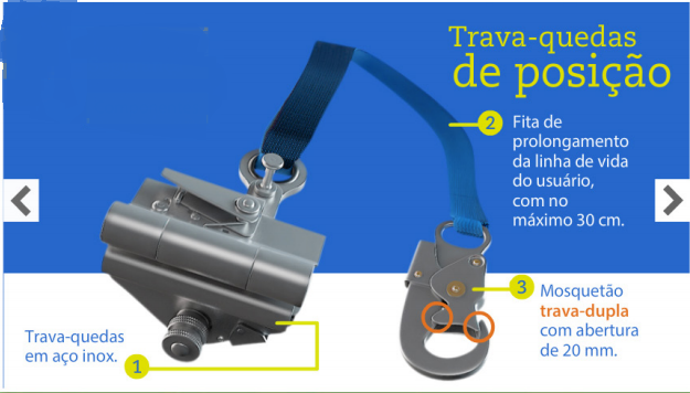 O ângulo de utilização do trava-quedas deve ser de 30º, para que ele não funcione como pêndulo em caso de queda.