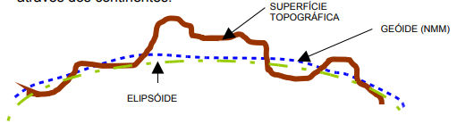 Geóide:Originada do elipsóide, convencionou-se dar um nome efetivamente relacionado com a Terra, e este nome é o Geóide, sendo definido como a superfície equipotencial (sobre mesma ação gravitacional) do Nível Médio dos Mares (NMM) em equilíbrio, prolongada através dos continentes.