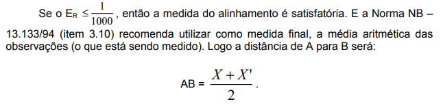 As medidas obtidas de AB e BA, apesar de ser o mesmo alinhamento, deverão ser diferentes, o que nos leva a induzir que houve um erro (ε).