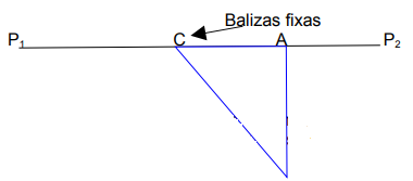 A baliza no ponto C está fora do alinhamento. Este erro é pequeno, pois é percebível por quem informa a condição de alinhamento.