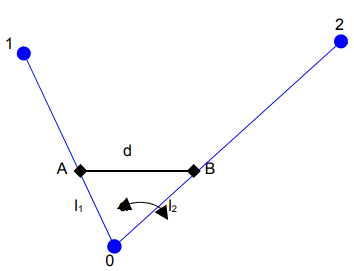 Se as distâncias forem iguais, ou seja, l1 = l2 = l, utiliza-se a trigonometria no triângulo isósceles. Tem-se, portanto: