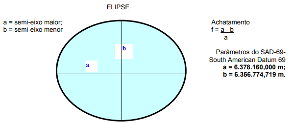 Forma de uma elipse de revolução (elipsóide):Como a terra tem a forma arredondada e achatada nos pólos, há uma indicação, confirmada por observações espaciais, que ela se aproxima de uma Elipse. Esta é a superfície de Referência usada para cálculos geodésicos, pois há parâmetros matemáticos de sua geometria, como Equação da Elipse, achatamento, excentricidade.