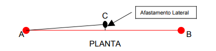 Procedimento:Um operador de ré (A), com o auxílio de um outro, ou não, segura o diastímetro e outro operador posiciona-se em C com uma baliza. Neste momento com a medida d, as três balizas devem estar perfeitamente alinhadas (ACB), confere-se mais uma vez a distância e, então, fixa-se a baliza em C.