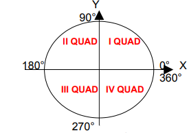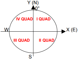 De maneira similar ao ciclo trigonométrico, existe o círculo topográfico que é uma circunferência dividida em quatro partes iguais, através de um sistema de eixos cartesiano (X,Y) que se cruzam ao centro dela. Cada parte dividida é chamada de Quadrante.