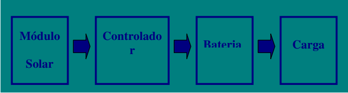 É a configuração utilizada com módulos de 33 ou 36 células na qual se liga o gerador fotovoltaico a uma bateria através de um controlador para que esta não se sobrecarregue. As baterias de acumuladores alimentam cargas em corrente contínua.