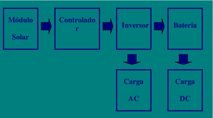 Quando se necessitar energia em corrente alternada poderá ser incluído um inversor. A potência gerada no sistema fotovoltaico poderá ser transformada integralmente em corrente alternada ou poderão alimentar-se simultaneamente cargas de corrente contínua (DC) e de corrente alternada (AC).