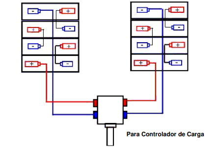 Instalação em 48 Vcc com oito módulos fotovoltaicos de 48 Vcc