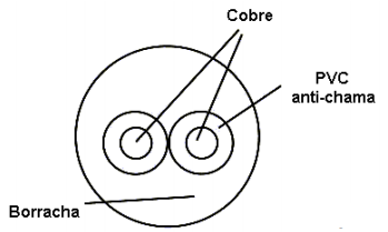 Para as conexões entre o módulo solar e o controlador e entre este e o banco de baterias recomenda-se o uso de cabos tipo PP, do tipo apresentado abaixo. Estes cabos são flexíveis e devem ser preferencialmente instalados dentro de eletrodutos de PVC para devida proteção mecânica. O seu nível de isolamento é de 500 V. Ver figura 27 a seguir.
