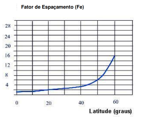 Com base na latitude do lugar da instalação obtém-se da fig. 29 o Fator de espaçamento. Assim, a distância mínima a que poderá estar localizado o objeto será, como indicado na fig. 30: